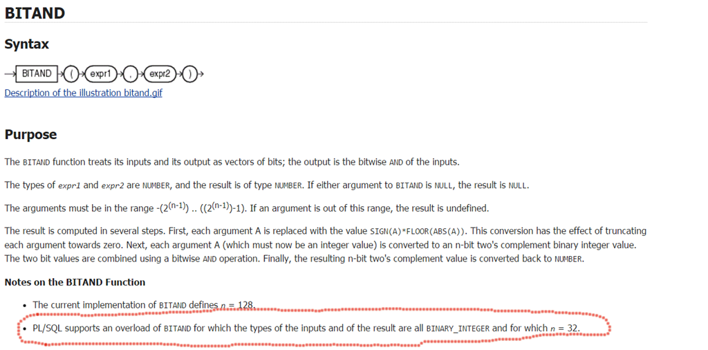 The long existing BITAND function is now within the documentation, to let you do logical AND on two numbers, and is also available from PL/SQL