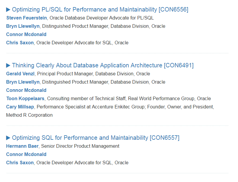 OpenWorld is just around the corner, and the Ask Tom team will be involved in a number of panels where you can chat to us, ask questions, debate topics and basically have a relaxed 45mins during all the frenzied activity that is OpenWorld. So if you’ve got any questions you would like answered “face to face”, rather than via Ask Tom, either drop them as a comment here, or feel free to post them on the AskTom site and just annotate it in some way that lets us know you’d like to talk about it on the panels during OpenWorld.