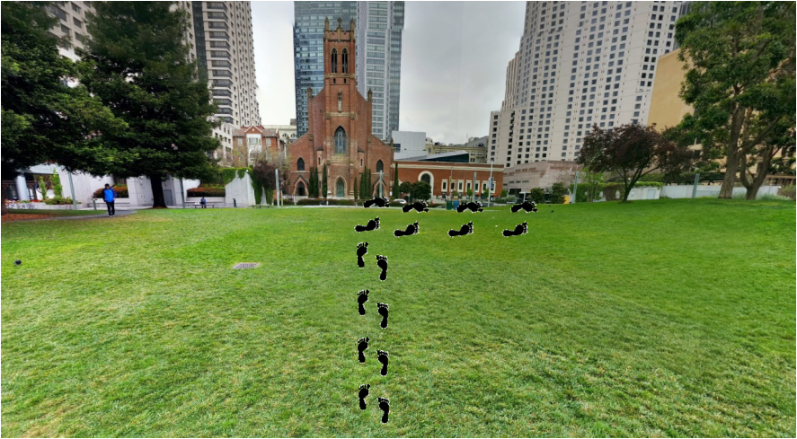 1) From Howard St, head up the stairs next to the Moscone Center entrance