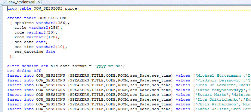 Obviously its accuracy is only as good as the time at which I grabbed the data (and we’re still a month away from OpenWorld) and only as good as my JSON parsing capabilities, which is perhaps the larger risk