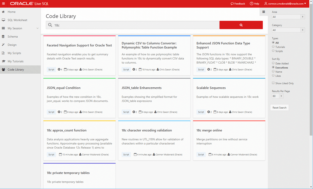 Well, there is still a way to get ahead of the game and skill up on 18c. We’ve upgraded livesql.oracle.com to 18c, and we’ve pre-loaded some demo scripts for you as well.