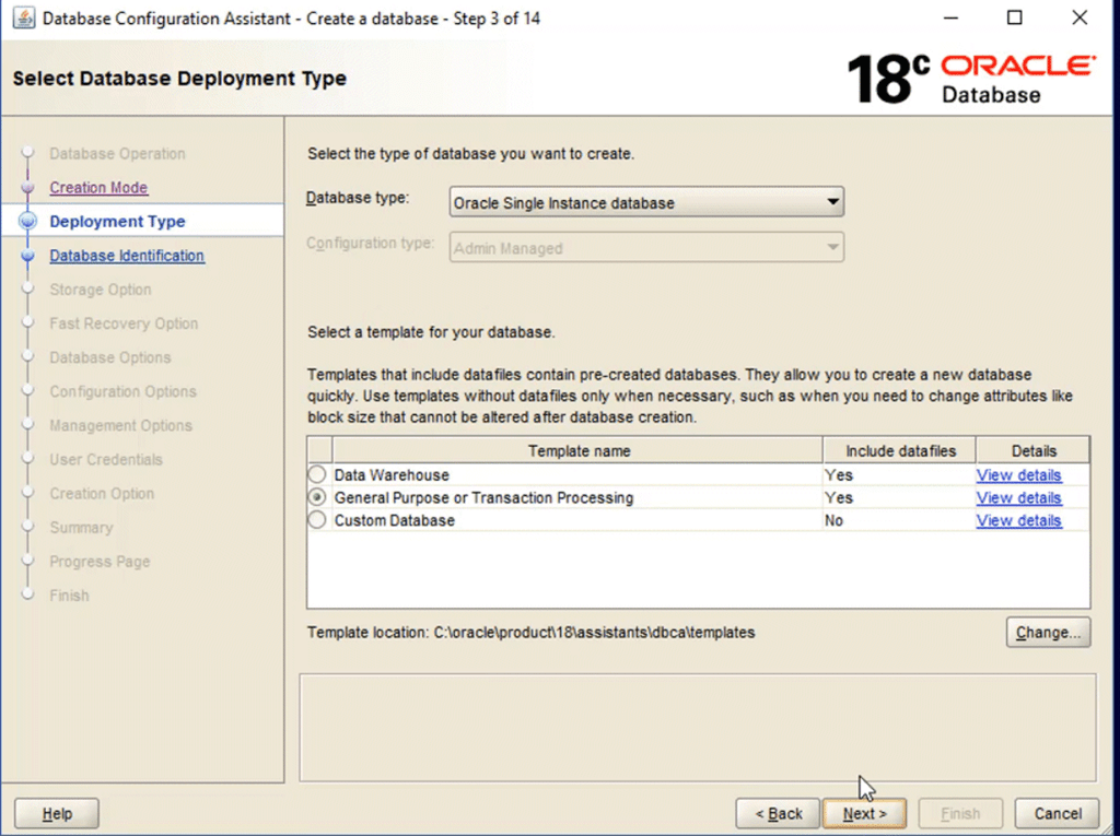 For just research and exploration on your own Windows machine, you’ll probably want to opt for just a single instance database. RAC takes a bit more setup and complexity. For a faster install, choose one of the options that has the datafiles included. This way, the installer will just copy some existing files and seed them as your database, rather then building the entire instance from scratch.