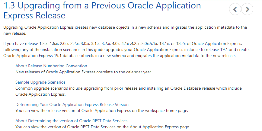 Note: I moved my original APEX installation to a backup area, and placed the new version 19 installation in place of the old location, so I did not have to move or copy any images and static files around. Your approach may be different, so just to reiterate – consult the standard docs before diving into your upgrade.