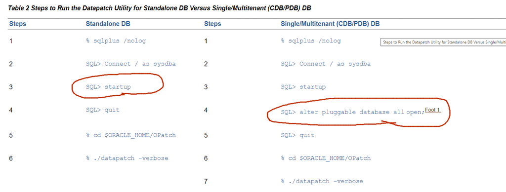 and you’ll see that datapatch no longer requires the database to be in upgrade mode. You simply open it in normal mode and run datapatch.