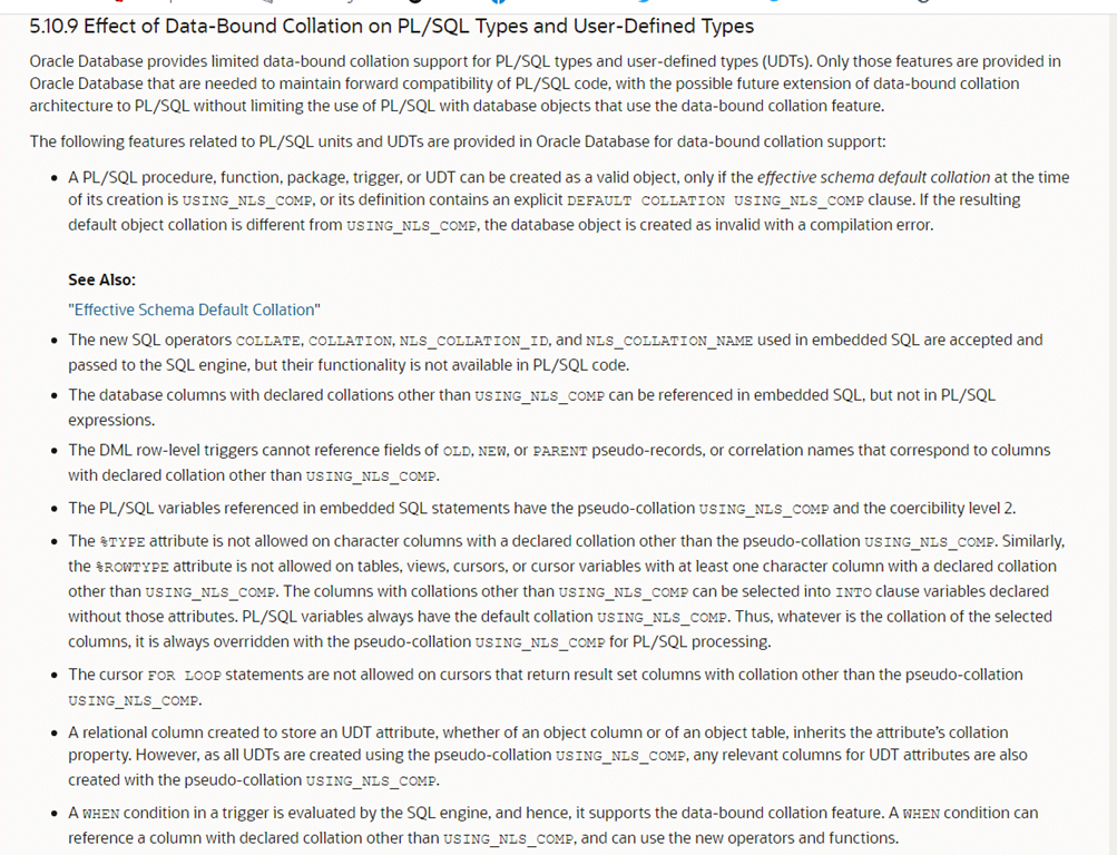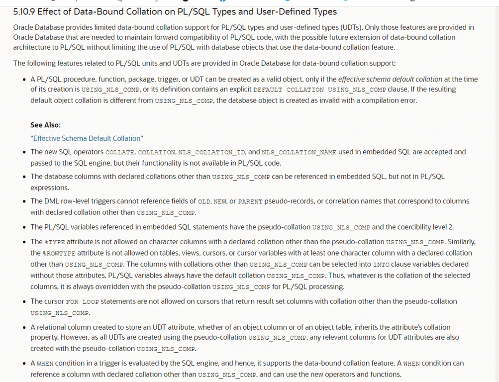 PLS-00762: %TYPE or %ROWTYPE must have the USING_NLS_COMP collation