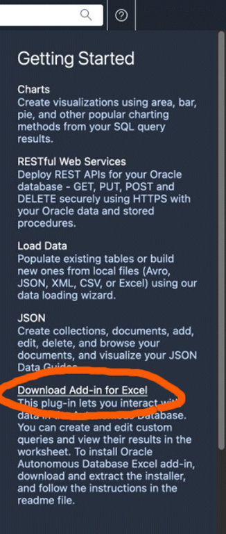 1) Head into Database Actions on your Autonomous database and download the Add-in.