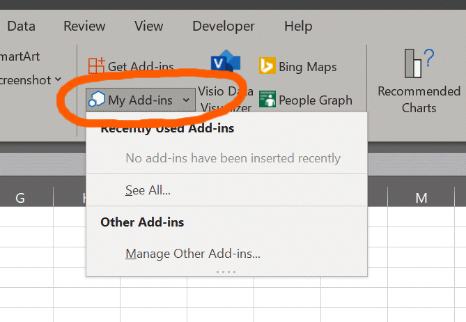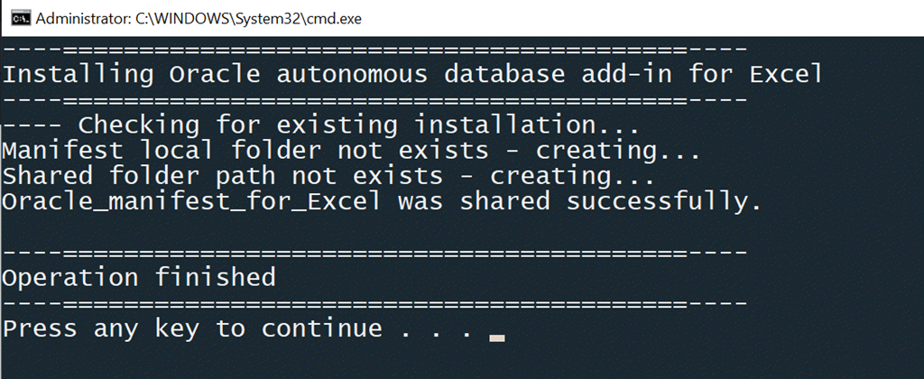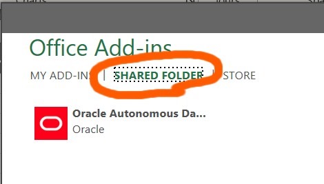 3) Fire up Excel, go to Addins and choose your Autonomous Database from the Shared Folder tab