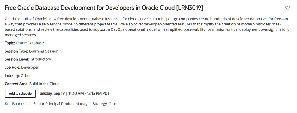 This also means I can plan on catching a full day of awesome content on the first day. Here’s a few keynotes and database sessions that should be on your agenda! I’ve put a link under each one so you can head over to the CloudWorld to register and pre-book your seat, or go straight to my sessions here