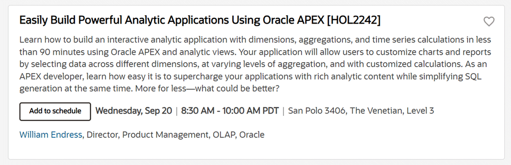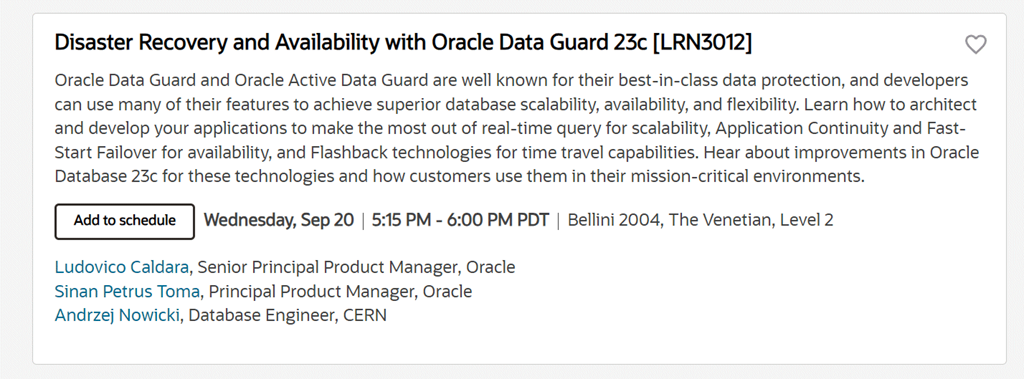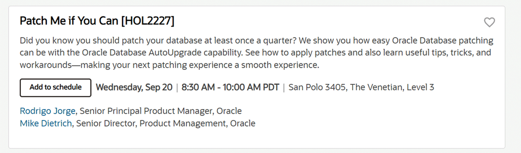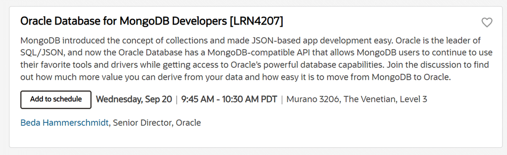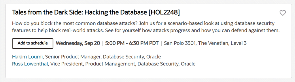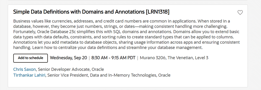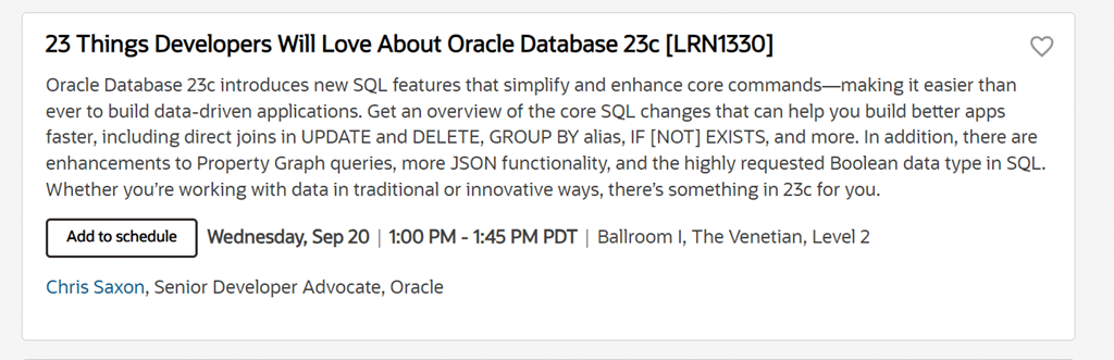 Dom and Jenny will have their annual overview of the latest features in the Oracle Database. For the “big picture” or “10,000 ft view” of the directions for Oracle Database, this is a great session to jump into. If you’re more into the deep tech details, then scroll onwards for my session later.