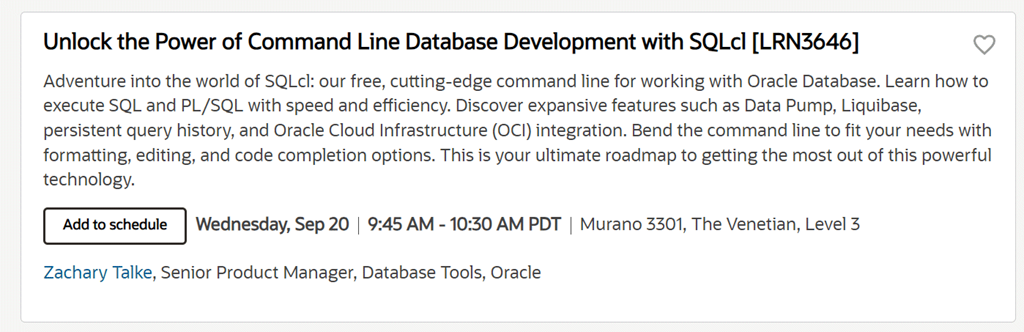 For the developers in the room who are not as interested in the database, but more how to interact with it via tools, then Zachary will give some insights into SQLcl at the same time.