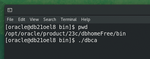 Fire up a new terminal, head into $ORACLE_HOME/bin and launch ‘dbca’.