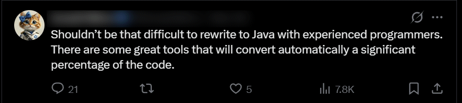This is a common developer mindset: Migration = “We just need to rewrite the code”